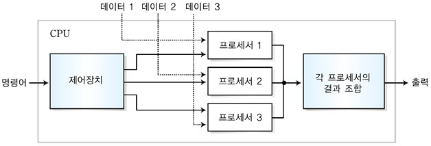 여분의 CPU가 다른 명령어를 처리할 수 있으므로 대기하는 시간 없이 바로 처리된다. 그래서 컴퓨터의 처리속도가 증가하게 된다. 여러 개의 CPU가 필요하므로 비용이 상승하지만 그 만큼 컴퓨터가 처리하는 속도는 증가하게 될 것이다.