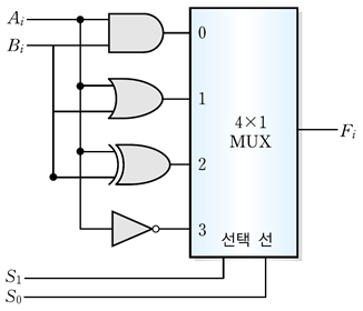 - 선택선 S1과 S0는 산술연산 회로와 논리연산 회로가 공통으로 사용